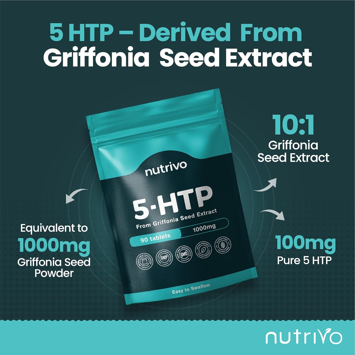 5HTP Tablets – 90 Tablets Per Pack | 5HTP High Strength Supplement | One A Day – 3 Months Supply | from Griffonia Seed Extract | Vegan & UK Made