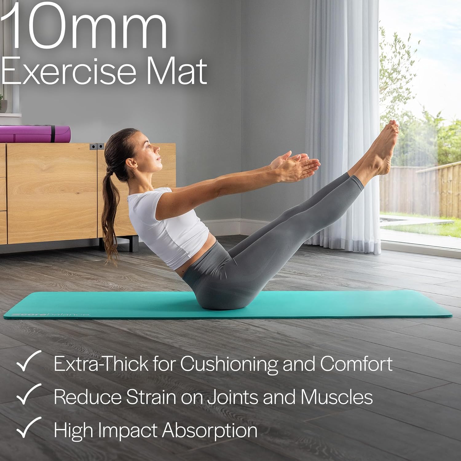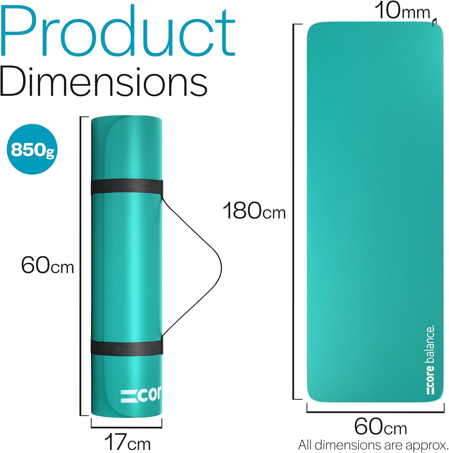 EXTRA-THICK FOR CUSHIONING & COMFORT: Experience ultimate comfort when you’re working out with the Core Balance Pilates & Exercise Mat. Designed with a depth of 10mm, it’s almost double the thickness of a standard mat to reduce the strain on your joints and muscles when you’re working out. Exercise mat measures L180cm x W60cm x D1cm.