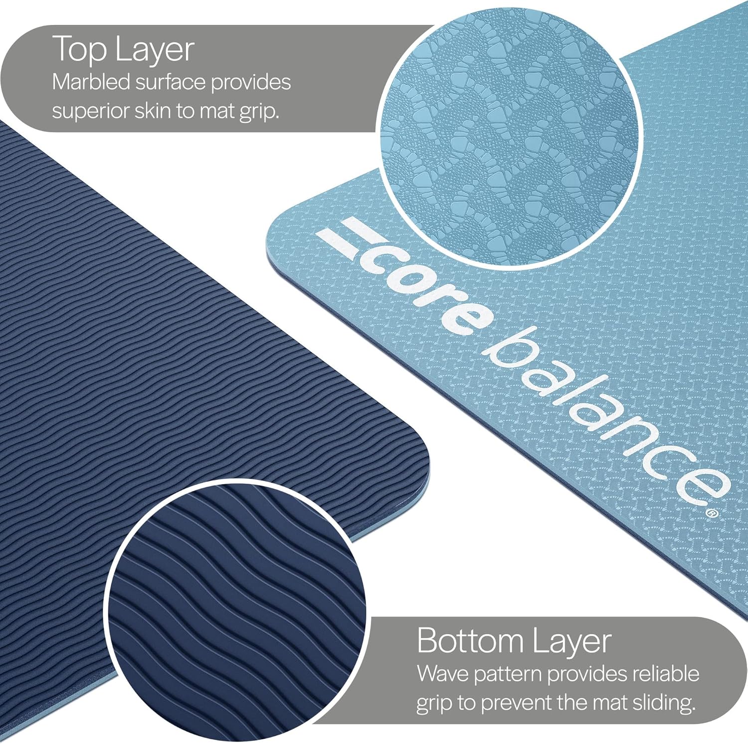 Core Balance Yoga Mat, Non Slip 6mm Thick TPE Foam for Gym Fitness Exercise Pilates Training, Lightweight & Compact with Travel Strap, 183cm x 65cm x 0.6cm (Choose Plain or with Alignment Lines)