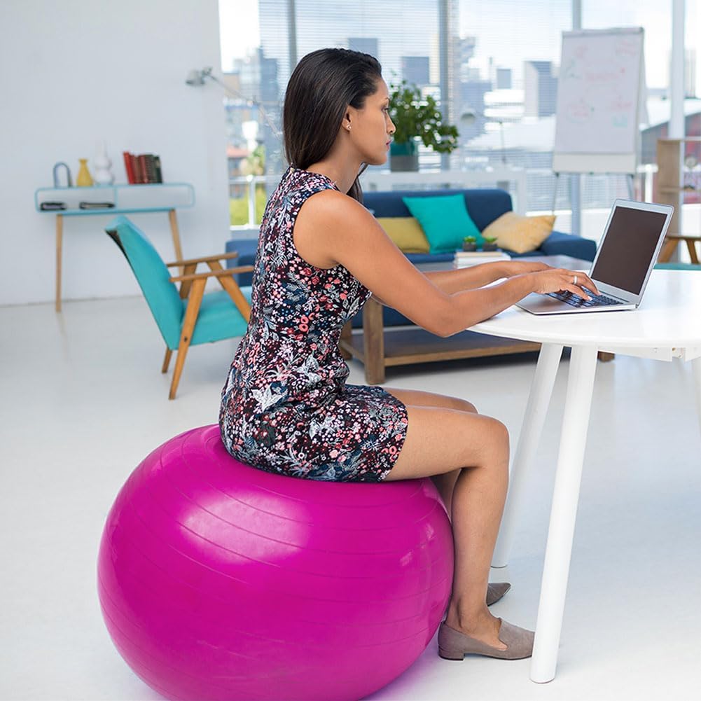 🧘‍♀️【IMPROVE POSTURE & BALANCE】Exercising with a stability ball keeps your abs constantly engaged making your core stronger, which promotes better posture, improves balance and stability, and protects the lower back. Good for pregnant women too.