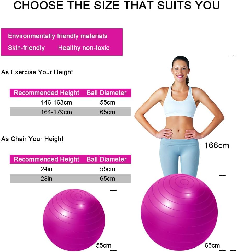 Our yoga balls are made of thick and durable PVC material, which is easy to clean and carry. Its non-slip design makes training safe and improves exercise efficiency.