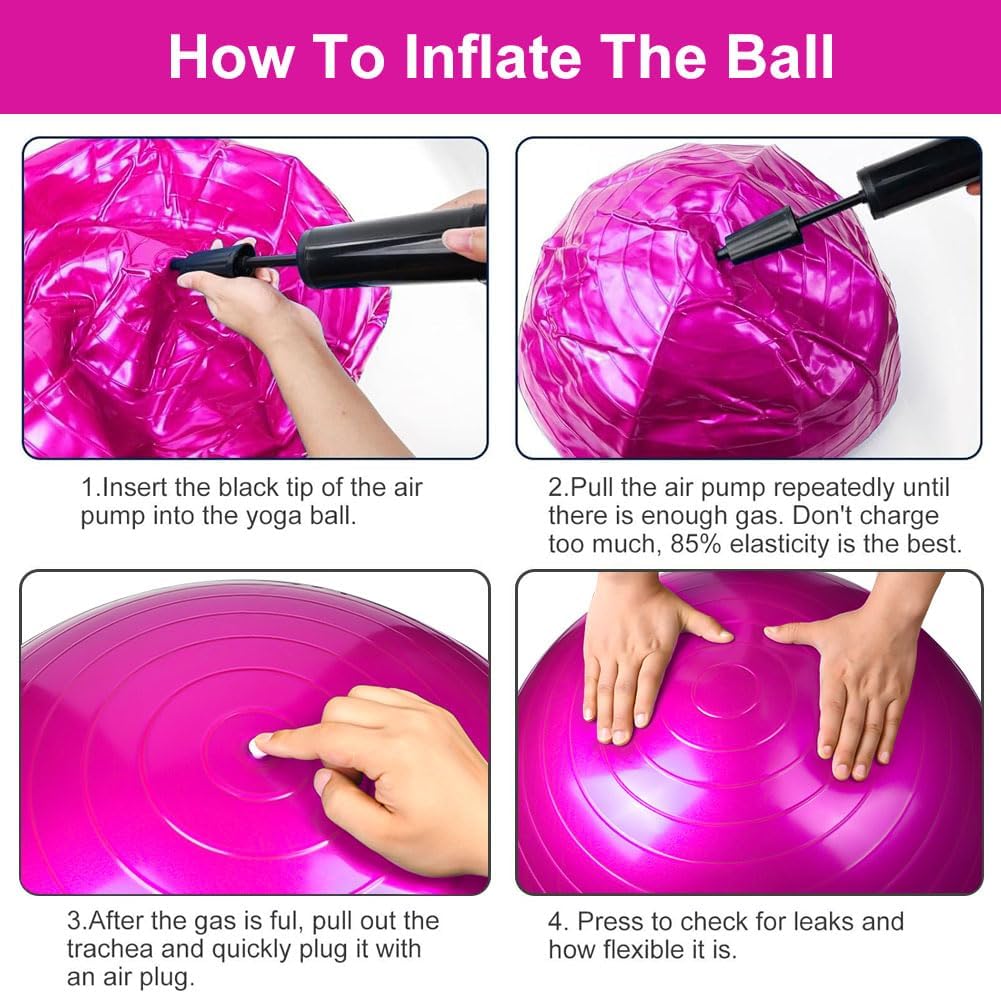 🧘‍♀️【EASY TO INFLATE】Save time and energy with the inflatable foot pump included in the package.Inflate the ball to approximately 80% during use, making the ball more flexible and safer.