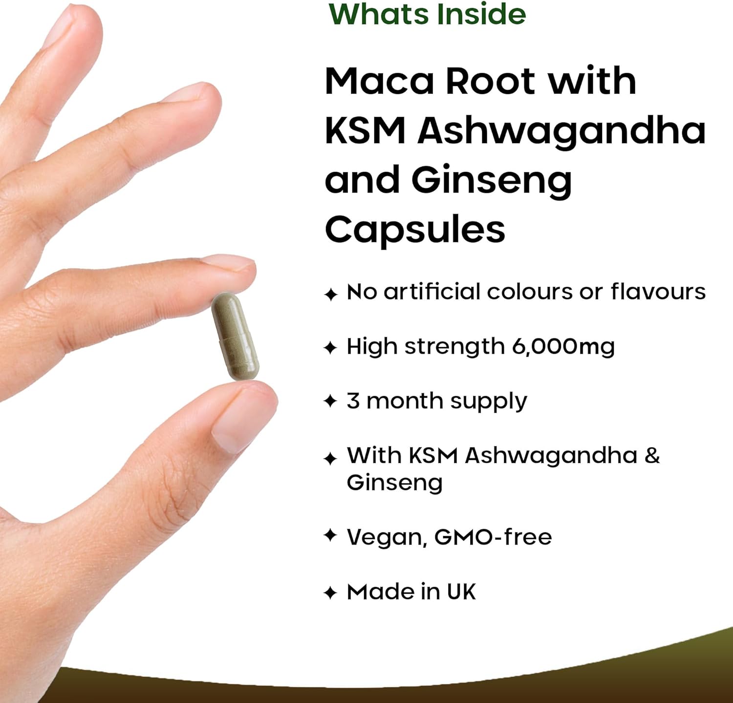 Maca Root Capsules with KSM Ashwagandha and Ginseng – 180 High Strength 6000mg Maca Root + Ashwagandha KSM-66, Panax Ginseng & Black Pepper – Vegan Capsules Made in The UK