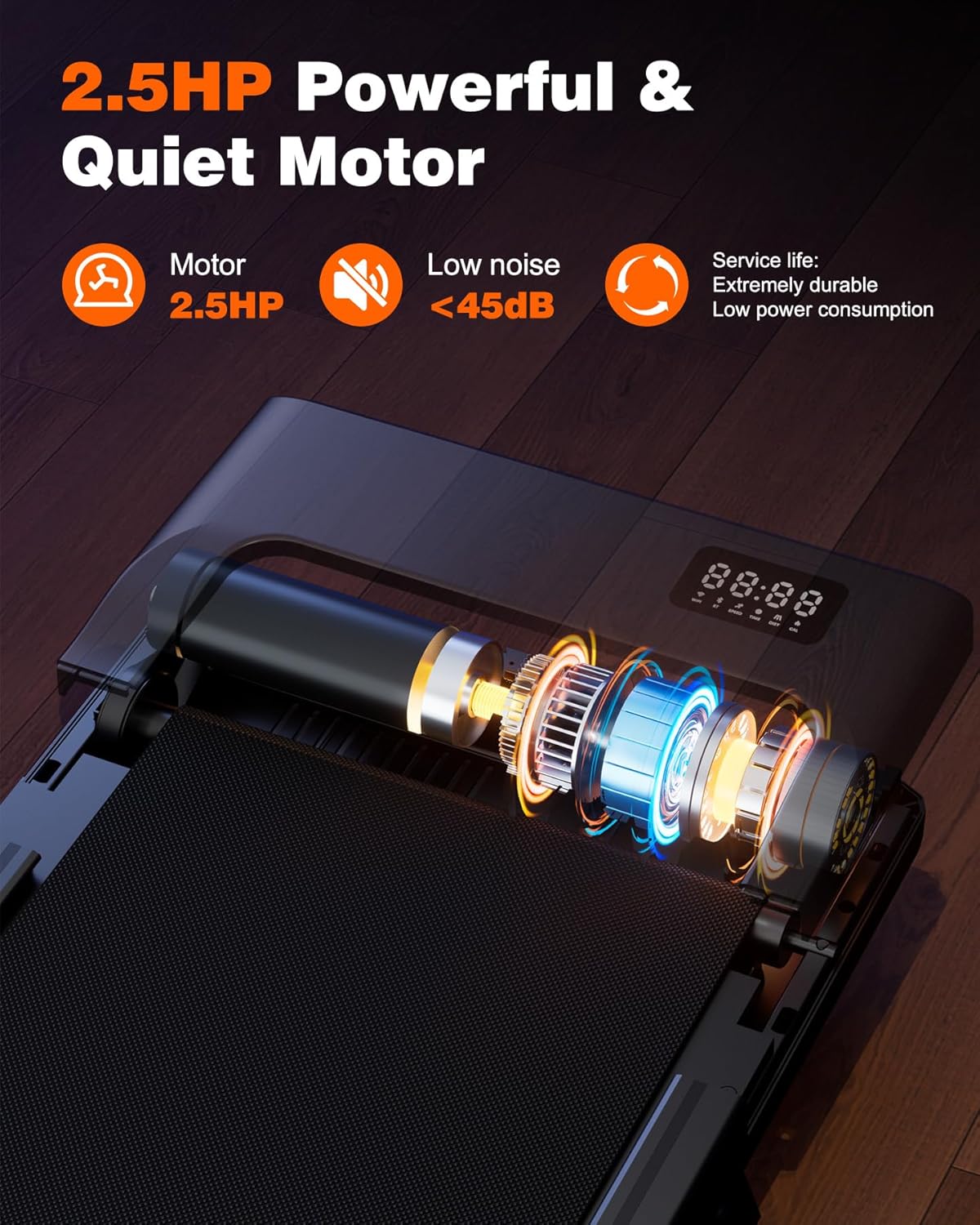 Excellent & Quiet Performance: Our under desk treadmill is powerful with 2.5HP motor while the noice is less than 55DB. Runners can enjoy applicable speed yet do not make noise. High-tech wearable devices are compatible and various scenes from old-growth forest to future city are waiting to choose.