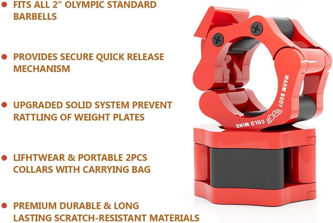 PROFESSIONAL QUALITY – Warm Body Cold Mind Premium 2 inch Olympic Barbell Clamps designed by the professional athlete with 20 years of experience in Olympic weightlifting Oleksiy Torokhtiy.