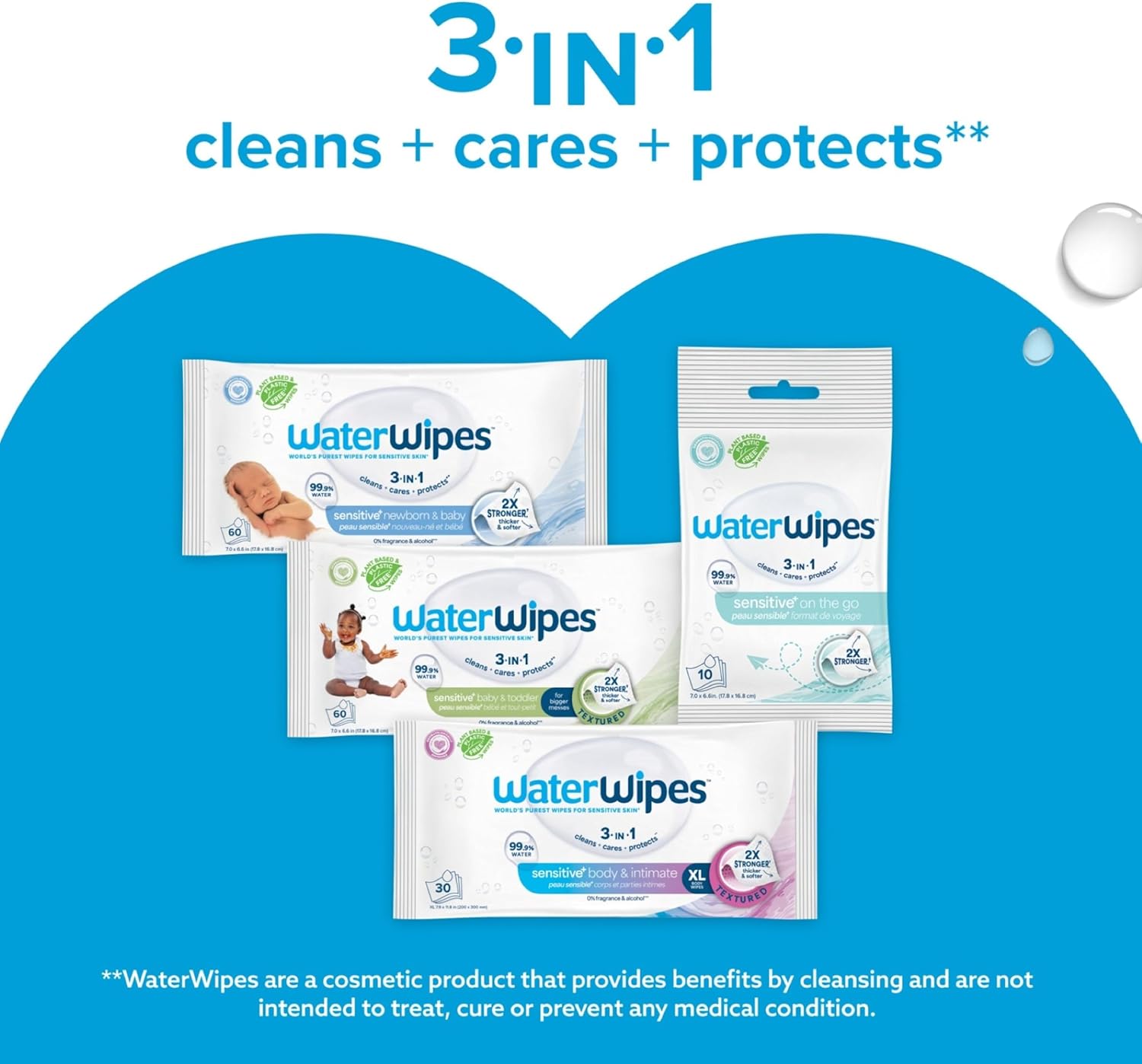 Introducing New & Improved WaterWipes, the World’s Purest Wipes for Sensitive Skin. Families can continue to trust WaterWipes Sensitive+ New Born & Baby Wipes to gently clean, care and help protect sensitive skin – now with a 2X stronger†. Thicker and softer wipe, and a fresh new look. Our plant-based & plastic free†† wipes maintain the same purity, with just two carefully selected ingredients: 99.9% ultra-purified water and a drop of fruit extract. Our ultra-purified water undergoes a 7-step process, making it even purer than tap, boiled, or bottled water. WaterWipes remain unscented and gentle on sensitive skin. They are clinically proven to be kind to babies’ skin—giving parents the confidence to help protect their children in the purest way possible. WaterWipes was born from a father’s love—our founder created these wipes after his newborn suffered from nappy rash realising that skin this pure deserves care that’s just as pure. That inspiration led to the creation of the world’s purest wipes for sensitive skin, trusted by families worldwide for everything from nappy changes to messy hands and faces. †material than previous WaterWipes™ ††Claim does not refer to the full product lifecycle nor packaging. Wipes made from regenerated cellulose.